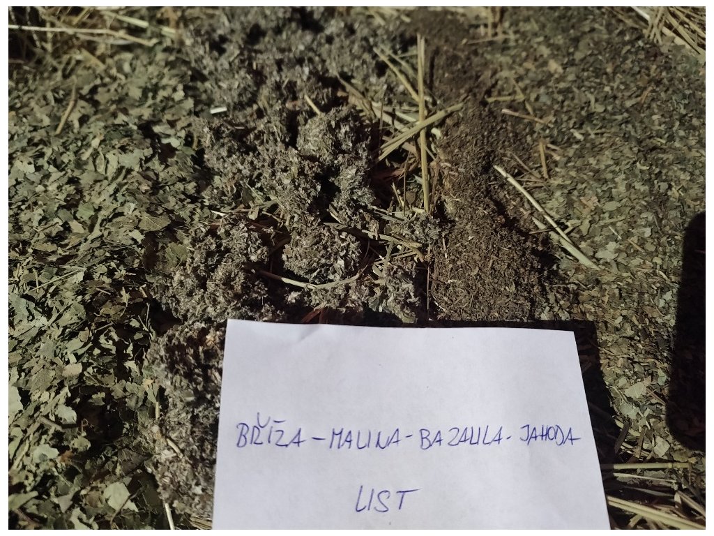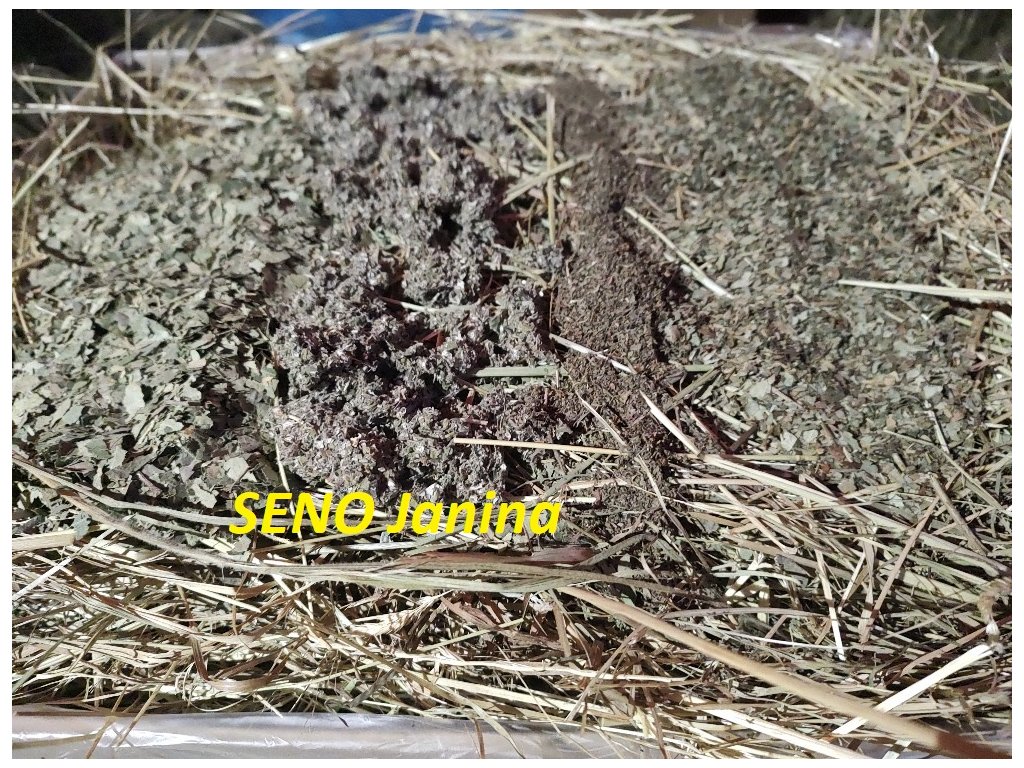 Složení: kvalitní luční bylinkové seno z první seče 2025, břízové listí, malinové listí, list bazalky, list jahody.