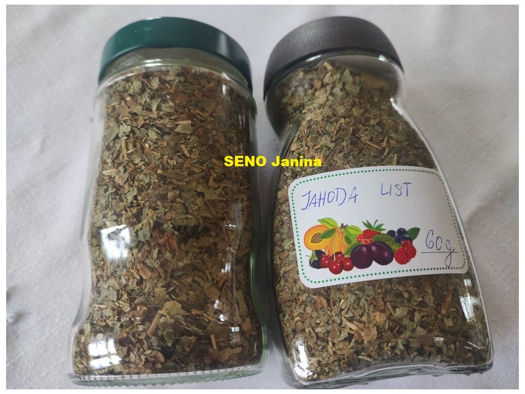 List jahody sušený, řezaný, ve skle, přičemž varianta skleniček se může lišit.